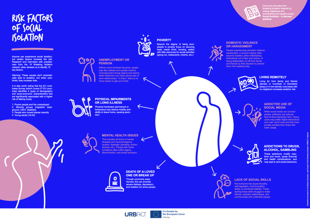 Social isolation has emerged as one of the most pressing public health challenges of our time, affecting millions of people across Europe and contributing to serious physical and mental health problems, increased mortality rates, and significant strain on healthcare systems. The urgency of this issue has been recognized at the highest levels, with the World Health Organization creating a dedicated commission on social connection to promote the topic and push countries to take policy actions to fight isolation. The Breaking Isolation network recognized that this issue transcends borders and demographics, impacting individuals of all ages—from young people struggling with digital-age disconnection to elderly citizens facing loneliness in aging societies. As urbanization, changing family structures, and the aftermath of the COVID-19 pandemic have intensified feelings of disconnection, the economic and social costs have become impossible to ignore. By bringing together cities from across Europe, the Breaking Isolation network aimed to share innovative solutions and proven strategies to combat this growing crisis, understanding that isolated individuals not only suffer personally but that communities as a whole lose the social cohesion and mutual support that are essential for thriving, resilient societies. Addressing social isolation is not just a matter of individual wellbeing—it is fundamental to building inclusive, connected communities where everyone has the opportunity to participate fully in civic life.